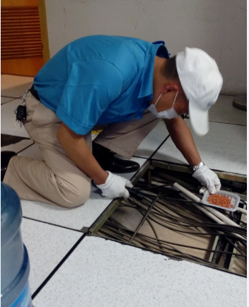 在機房、實驗室等一些放置了精密設備或儀器的地方,為杜絕潮濕、靜電等因素的影響,一般都在房間內設置了架空層,這一隱蔽的部位為鼠害的藏匿提供了良好的條件,在鼠害的防治工作中為不遺留死角,我們需要采用吸盤將其地面的地板取開,進行檢查。